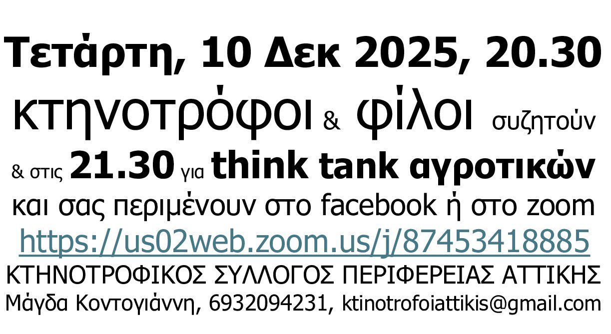 Όλοι οι σοβαροί θεσμοί έχουν Ομάδα προβληματισμού, μελέτης σεναρίων και τεκμηρίωσης με την μορφή think tank. Οι αγρότες (γεωργοί, κτηνοτρόφοι, αλιείς, δασοκόμοι κλπ) ΔΕΝ έχουν κάποιας μορφής think tank για σύνθεση και τεκμηρίωση προτάσεων επίλυσης προβλημάτων με πραγματικές-ΕΦΙΚΤΕΣ λύσεις. Το Think tank θα μπορούσε να αποτελείται από κατ’ επάγγελμα αγρότες, που βιοπορίζονται και εξαρτώνται από το αγροτικό τους εισόδημα, και γνωρίζουν-καταλαβαίνουν την ανάγκη για επιστημονικές προτάσεις που απαραίτητα θα είναι εφαρμόσιμες & ΕΦΙΚΤΕΣ. Οι αγρότες μέλη του think tank θα έπρεπε να κατέχουν τίτλους σπουδών τριτοβάθμιας εκπαίδευσης και να παράγουν ΕΦΙΚΤΕΣ προτάσεις τόσο για τα επείγοντα όσο και κυρίως για τα σημαντικά θέματα του αγροτικού κόσμου.