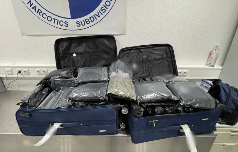 Από τον έλεγχο που πραγματοποιήθηκε στις αποσκευές τους, συνολικά κατελήφθησαν να έχουν αποκρύψει σε νάιλον συσκευασίες εντός των αποσκευών τους, 72 κιλά και 700 γραμμάρια ακατέργαστης κάνναβης υδροπονικής καλλιέργειας (skunk).