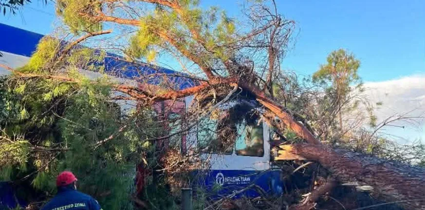 Πύργος: Δέντρο έπεσε σε τρένο, τραυματίστηκε ο μηχανοδηγός
