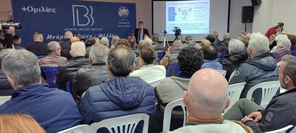 Στο επίκεντρο ενός γόνιμου διαλόγου για το μέλλον των υδάτινων πόρων βρέθηκε χθες το απόγευμα ο Δήμος Βέλου-Βόχας, με την πραγματοποίηση της ενημερωτικής εκδήλωσης «Κλίμα & Νερό σε έναν μεταβαλλόμενο κόσμο». Η κατάμεστη αίθουσα εκδηλώσεων στο Βραχάτι φιλοξένησε μια συζήτηση υψηλού επιπέδου, όπου η επιστημονική γνώση συνάντησε την πολιτική βούληση για την αντιμετώπιση ενός από τα πλέον κρίσιμα ζητήματα που απασχολούν την τοπική κοινωνία. Η εκδήλωση ανέδειξε την αναγκαιότητα συντονισμένων δράσεων για τη διαχείριση της κλιματικής κρίσης, η οποία μεταβάλλει δραματικά τα δεδομένα στην παροχή και την επάρκεια του νερού.
