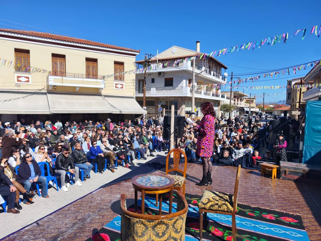 Το σατιρικό σκετς της ημέρας, γεμάτο εύστοχες τοπικές αναφορές και χιούμορ, χάρισε στιγμές γέλιου, ενώ το γλέντι συνεχίστηκε με ζωντανή ορχήστρα, παρασύροντας τους παρευρισκόμενους σε έναν αυθεντικό παραδοσιακό χορό.