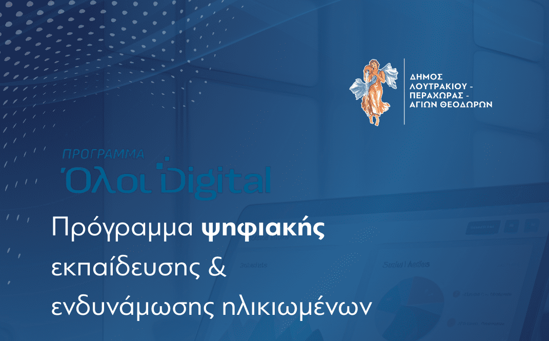 «Όλοι Digital»: Ξεκίνησαν οι αιτήσεις για το Νέο Πρόγραμμα Ψηφιακής Εκπαίδευσης & Ενδυνάμωσης Ηλικιωμένων στον Δήμο Λουτρακίου – Περαχώρας – Αγίων Θεοδώρων