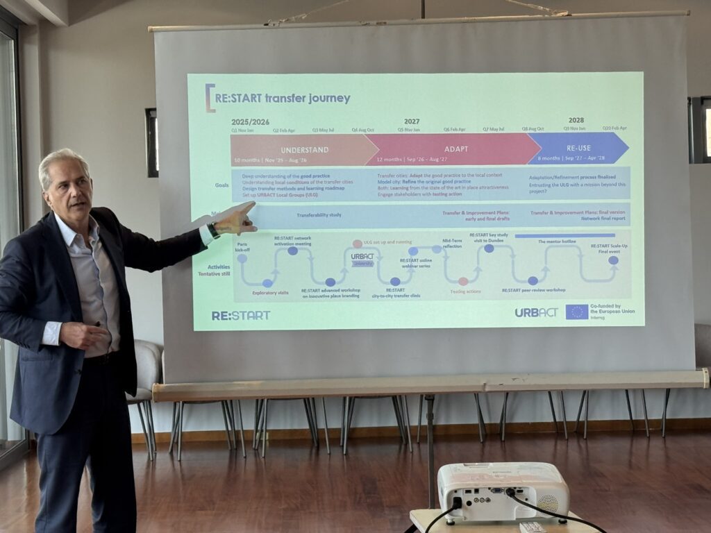 Το δίκτυο RE:START αποτελεί ένα από τα Δίκτυα Μεταφοράς του προγράμματος URBACT και επικεντρώνεται στην ενίσχυση της ελκυστικότητας των μεσαίου μεγέθους ευρωπαϊκών πόλεων, μέσα από την προσαρμογή και αξιοποίηση της καλής πρακτικής του Δήμου Idanha-a-Nova, ο οποίος έχει αναπτύξει ένα ολοκληρωμένο μοντέλο βιώσιμης τοπικής ανάπτυξης που συνδέει την αγροτική παραγωγή, την έρευνα, την καινοτομία, την τοπική ταυτότητα και την πολιτική κινήτρων για την ανάδειξή του ως τόπος για κατοικία, εργασία και επένδυση.