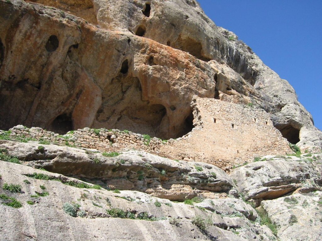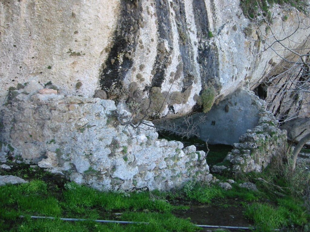 Σήμερα ονομάζουμε καταχρηστικά «Kάστρο» το σπηλαιώδες ασκητήριο που είναι περίκλειστο με πέτρινο εξωτερικό τοίχο και βρίσκεται στην νότια πλαγιά του Πολυφέγγους, στην οροφή του οποίου υπάρχουν βραχογραφίες του 11ου-12ου αιώνα, μια της Υπαπαντής του Κυρίου και η άλλη (η πιο αχνή), μάλλον του Αγίου Γεωργίου έφιππου με ένα παιδί στα καπούλια του αλόγου του (η προφορική παράδοση διασώζει ότι πρόκειται για «τον Ιωσήφ με το γαϊδουράκι» κάτι που φαίνεται λιγότερο πιθανόν, μιάς και η σχέση του Πολυφέγγους με τον Άγιο Γεώργιο, ακόμα και ονοματολογικά, υπήρξε πολύ ισχυρή: καστροπολιτεία Πολυφέγγους και μεσαιωνικός Άγιος Γεώργιος θεωρούνται ιστορικά δίδυμος οικισμός και στα μεσαιωνικά κείμενα αναφέρονται συνδυαστικά και με τα δύο ονόματα).