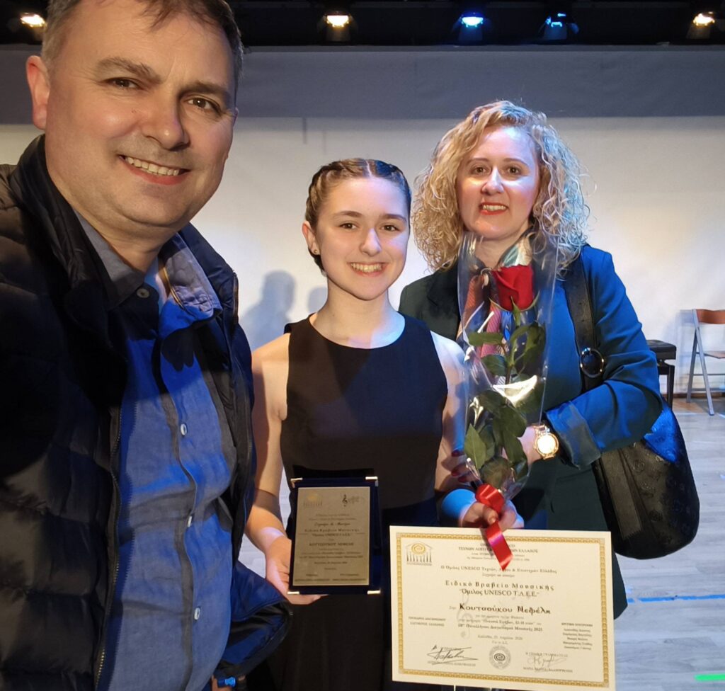 Μέσα σε λίγες μέρες κέρδισε 1ο βραβείο στον Πανελλήνιο Μουσικό Διαγωνισμό Μαρίας Χαιρογιώργου-Σιγάρα στο φλάουτο και φλάουτο πίκολο, ο οποίος διεξήχθη στο Μέγαρο Μουσικής Αθηνών.