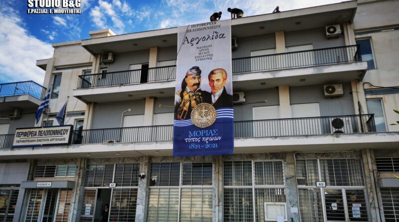 Αναρτήθηκε το απόγευμα της Δευτέρας 31 Μαΐου banner μεγάλων διαστάσεων, αφιερωμένο στα 200 χρόνια από την Ελληνική Επανάσταση του 1821, στο Κτήριο της Περιφερειακής Ενότητας Αργολίδας στο Ναύπλιο.