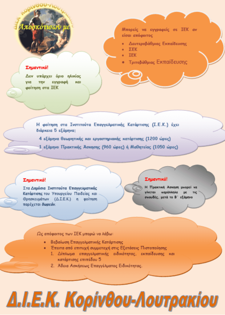 Περισσότερες πληροφορίες στην ιστοσελίδα του Δ.Ι.Ε.Κ. Κορίνθου Λουτρακίου