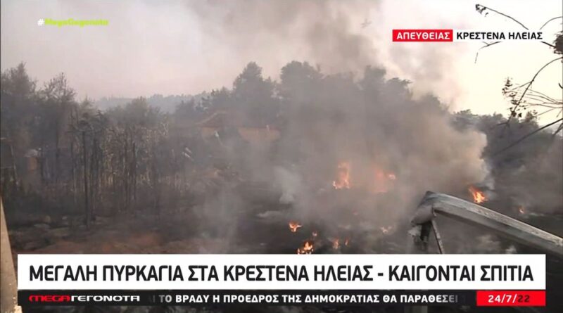Ηλεία: Ανεξέλεγκτο το πύρινο μέτωπο – Καίγονται σπίτια -VIDEO