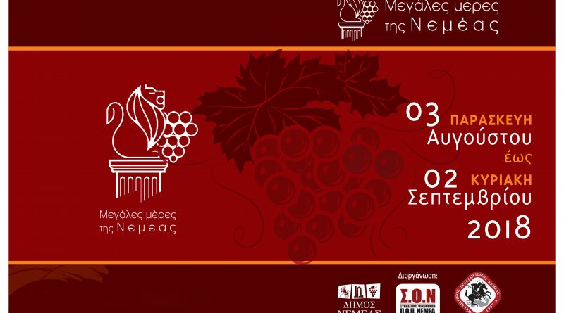 Διαβάστε περισσότεραΜεγάλες μέρες της Νεμέας 2018 3 Αυγούστου – 2 Σεπτεμβρίου 2018 Πρόγραμμα Εκδηλώσεων ΠΑΡΑΣΚΕΥΗ 3/8 21:00 ΠΡΟΑΥΛΙΟ ΓΕΝΙΚΟΥ ΛΥΚΕΙΟΥ ΝΕΜΕΑΣ