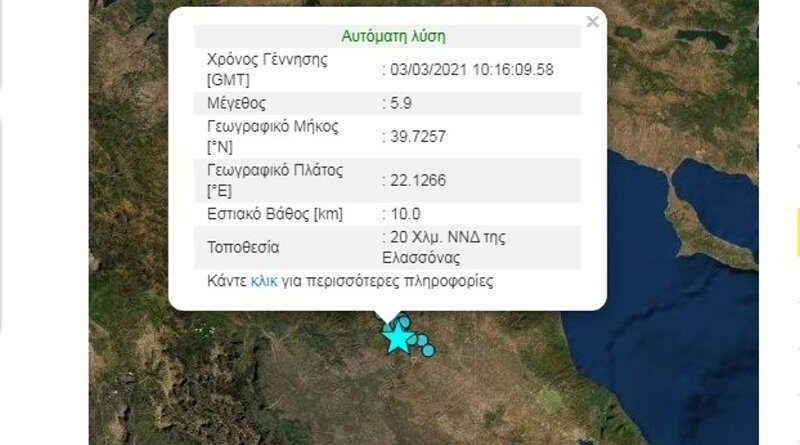 Διαβάστε περισσότεραΣύμφωνα με το Ευρωμεσογειακό Ινστιτούτο ο σεισμός έγινε 24 χλμ δυτικά-βορειοδυτικά της Λάρισας και 10 χλμ δυτικά βορειοδυτικά της Ελασσόνας.