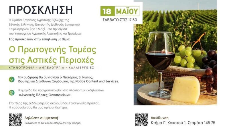 Διαβάστε περισσότεραΤο Σάββατο, 18 Μαΐου 2024, στις 17.30, στο Κτήμα ΚΟΚΟΤΟΥ στην Σταμάτα στον Δήμο Διονύσου της Βόρειας Αττικής οργανώνεται ημερίδα