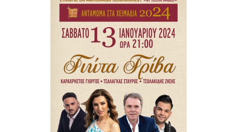 Διαβάστε περισσότερα“Χειμωνιάτικο Αντάμωμα” του Συλλόγου Σαρακατσαναίων Πελοποννήσου το Σάββατο 13 Ιανουαρίου 2024 .Διήμερο εκδηλώσεων διοργανώνει ο Σύλλογος Σαρακατσαναίων Πελοποννήσου που αφορούν