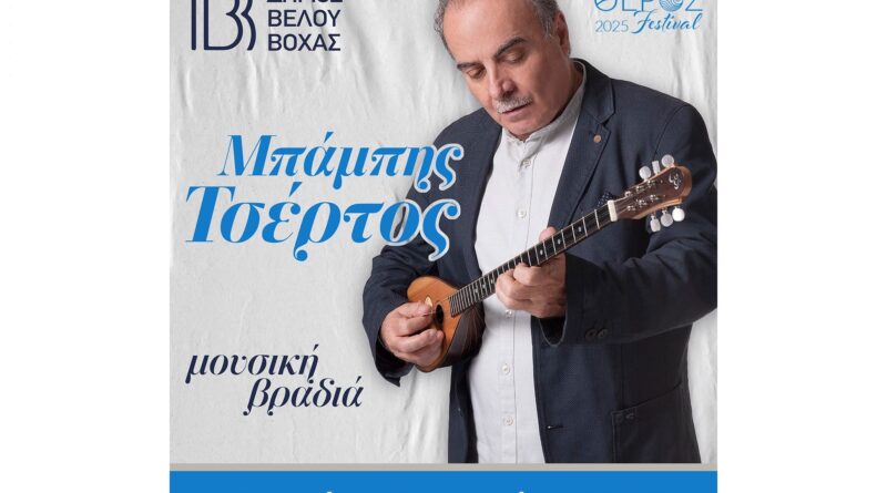 Διαβάστε περισσότεραΜια ξεχωριστή μουσική βραδιά υπόσχεται ο Δήμος Βέλου-Βόχας τη Δευτέρα 14 Ιουλίου 2025 στην Πλατεία Βοχαϊκού, με καλεσμένο τον σπουδαίο